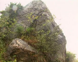 有一天傍晚,王家夫婦正在屋前坪上收稻谷,他倆疼愛的三歲小孩剛從大門里爬出來,就被孽龍一陣風(fēng)卷了去。忽聽云中大喝一聲:“孽畜,不得作惡!”孽龍?zhí)ь^看見觀音菩薩駕云到此,大吃一驚。但他好久未吃東西了,想先吃了再說,便張開大嘴,將小孩往口中送。觀音菩薩拂塵一指,將孽龍定住,又用手一招,把嚇得半死的小孩拖于懷中,怒斥孽龍道:“你這孽障,作惡多端,如不皈依,修成正果,永不出潭。”說罷,口中念念有詞,拂塵一掃,將孽龍打入潭中,并移來一塊兩丈來高的大石,壓在潭口上,鎮(zhèn)住孽龍。