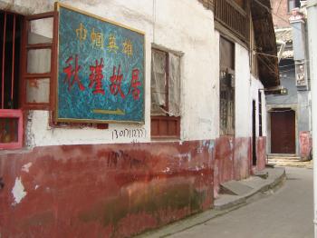秋瑾故居位于湘潭市十八總由義巷。這位近代史上杰出的巾國英雄、婦女解放運(yùn)動(dòng)的先驅(qū),在這里度過了8個(gè)春秋。離大碼頭不遠(yuǎn)處有一條寬敞的小巷叫由義巷,巷兩旁墻高院深,大多是官紳富商之家,也開設(shè)了幾家當(dāng)鋪、錢莊。進(jìn)巷口十多丈遠(yuǎn)處,有一棟青磚青瓦麻石門樓的鋪面,大門上首有一塊漢白玉石刻招牌“義源當(dāng)”,這是湘潭有名的義源當(dāng)鋪。