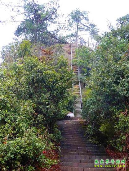 海拔 1122米,清末自民國時(shí)則土匪盤踞于此,留有27步石級,寨上有孤寨懸梯、悍匪窟穴等殘跡。